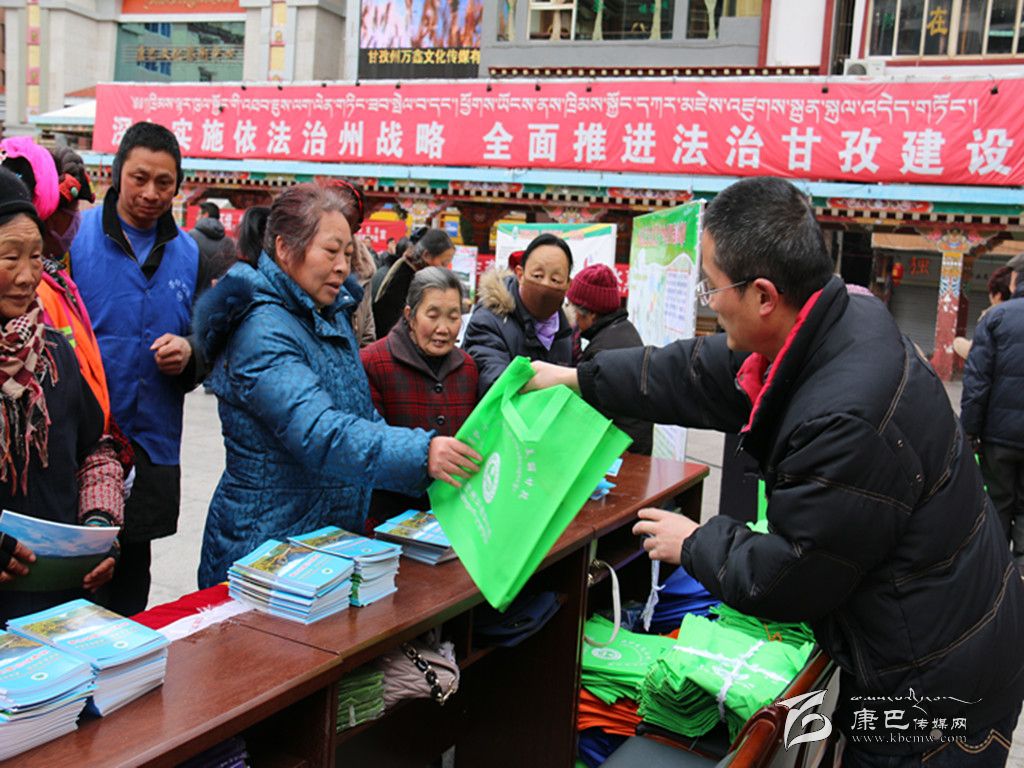 ●3月11日,由州環(huán)境保護局牽頭,州農(nóng)業(yè)畜牧局、州旅游局、州發(fā)改委、州林業(yè)局、州國土資源局、州文體廣局以及康定縣環(huán)境保護局聯(lián)合舉辦的 “3·11”生態(tài)日宣傳活動在情歌廣場上舉行。州政府副州長杜德清來到宣傳現(xiàn)場,和工作人員一同為前來咨詢的市民發(fā)放資料。