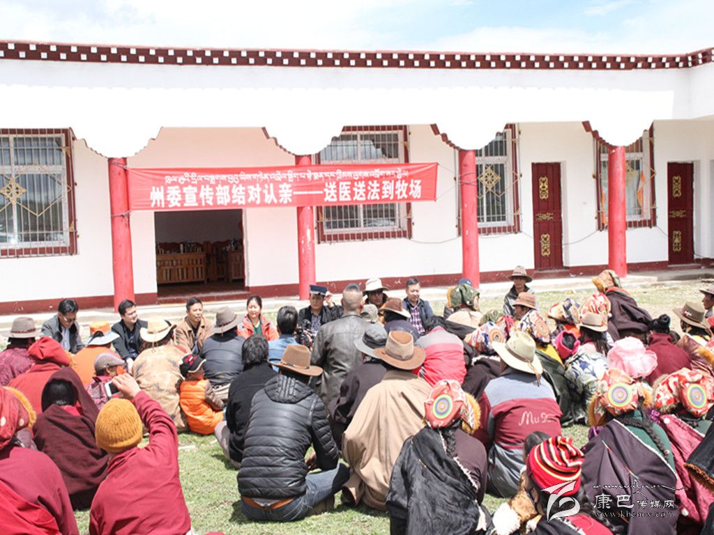 起塢鄉(xiāng)格托二村的牧民群眾都還在蟲草采集點,但得知州委宣傳部的親戚們要到村上來送醫(yī)送藥、送法律,牧民群眾們奔走相告,大家相繼趕到村級活動室外,熱情地與工作組握手問好,圍坐在草地上聽工作組為大家宣講法律法規(guī)、惠民政策等相關(guān)知識。