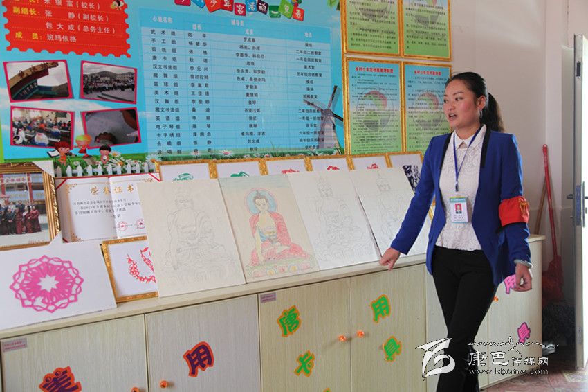 在少年宮孩子們參加格薩爾說唱表演的照片和一件件作品前,負(fù)責(zé)少年宮教學(xué)的張靜老師告訴記者,本著弘揚(yáng)傳承傳統(tǒng)文化的宗旨,少年宮目前設(shè)有14個(gè)興趣小組,包括唐卡、說唱、舞蹈、剪紙、藏文書法、手工、電子琴等,有30多名輔導(dǎo)老師利用業(yè)余時(shí)間和自己的特長(zhǎng)從事教學(xué)工作,另外,在色達(dá)縣委宣傳部的支持下,縣文化館還專門選派了兩名輔導(dǎo)員擔(dān)任說唱組的教學(xué)工作。