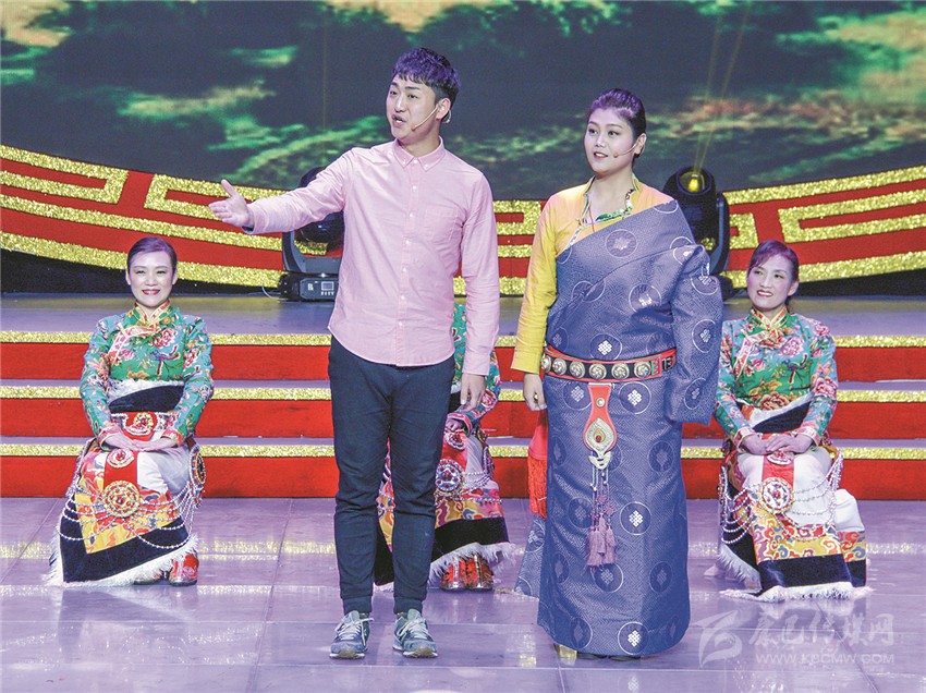 歌曲聯(lián)唱《百花爭艷》,是演出中第一個(gè)讓觀眾們大呼過癮的節(jié)目,年僅5歲的澤仁拉姆用一首藏族原生態(tài)歌曲《故鄉(xiāng)》,讓全場觀眾耳目一新。緊隨而來的藏族山歌《家鄉(xiāng)美》、漢族歌曲《和諧大家園》、回族歌曲《花兒與少年》、彝族歌曲《 尼雨尼杰》將音樂的魅力逐級(jí)顯現(xiàn),最后在經(jīng)典歌曲《愛我中華》中急速升華。6首歌曲風(fēng)格各異,卻又一氣呵成,不僅集中展示了我州藏、漢、回、彝四個(gè)民族的藝術(shù)風(fēng)采,還生動(dòng)展現(xiàn)了我州各族人民其樂融融、團(tuán)結(jié)進(jìn)步的和諧面貌。