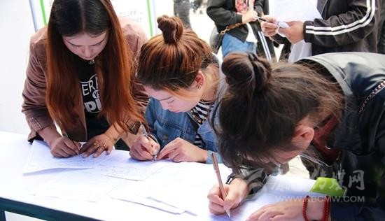 在現(xiàn)場,一名手拿“得榮縣人社局”牌子的年輕人引起了記者的注意?!拔沂堑脴s縣人才交流和就業(yè)服務(wù)局的一名工作人員,這次我們縣上有20余人報(bào)名,大都是剛畢業(yè)的學(xué)生,但由于路途遙遠(yuǎn)等原因,今天只來了12人,我是來給他們帶隊(duì)的,希望功夫不負(fù)有心人,他們都能應(yīng)聘到自己心儀的崗位?!边@名叫徐懿的年輕人告訴記者。