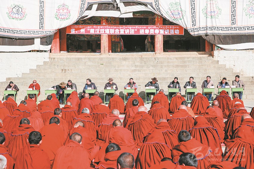 在法律進寺廟方面,我州持續(xù)深化法律進寺廟“四進七有”活動,健全完善寺廟法治宣傳欄、法律圖書角、法律服務(wù)聯(lián)系點、法律明白人管理等工作制度,建成寺廟法治宣傳欄598個、圖書角504個、法律服務(wù)聯(lián)系點489個,培訓(xùn)培養(yǎng)寺廟“法律明白人”947人;組織開展《憲法》《刑法》《刑事訴訟法》《國家安全法》《治安管理處罰法》《道路交通安全法》《宗教事務(wù)條例》進寺廟專項活動,全州共開展法律入寺宣傳1900余場次,覆蓋寺廟532座、僧尼8萬余人次。