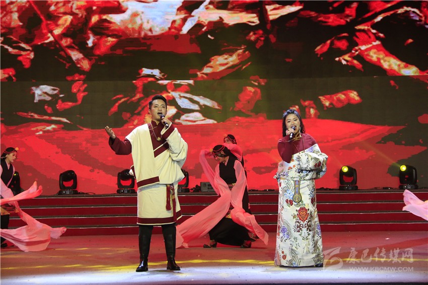 隨后以三個(gè)“新”字為主題的篇章,更是彰顯了民族風(fēng)情、甘孜風(fēng)格、時(shí)代風(fēng)貌。挖掘民族素材、彰顯民族文化,甘孜歌舞團(tuán)以格薩爾傳說為“藍(lán)本”,推陳出新表演的《格薩爾仲肯》,讓民族文化熠熠生輝;民族文化需傳承,少年強(qiáng)則甘孜強(qiáng)。德格縣中學(xué)少兒則噶表演的《吉祥頌》,讓人感到后生可畏,贏得陣陣掌聲;富有激情的朗誦、珠聯(lián)璧合的配樂,《甘孜與祖國相約出發(fā)》讓現(xiàn)場觀眾真切地感受到了盛世中華,真情贊美幸福美好的新生活;歌曲大聯(lián)唱《如歌歲月》通過不同時(shí)代的代表性歌曲,唱出了甘孜兒女愛祖國、愛家鄉(xiāng),感黨恩、思奮進(jìn)的真摯情懷;由州歌舞團(tuán)和爐霍、丹巴、德格、巴塘等縣藝術(shù)團(tuán)聯(lián)袂上演的《幸福大家庭》,既有漢族歌舞《祝福祖國》、藏族舞蹈《放牧人》、蒙古族舞蹈《送親》、彝族舞蹈《彝家情》、回族舞蹈《花兒》,更是彰顯了民族團(tuán)結(jié)的大主題,為我州創(chuàng)建全國民族團(tuán)結(jié)進(jìn)步示范州擂鼓助威。
