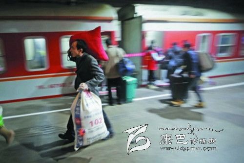 盡管旅客身上都背著厚重的行囊,盡管旅客特別多,但是每個(gè)旅客的臉上,都只寫了兩個(gè)字——“回家”。