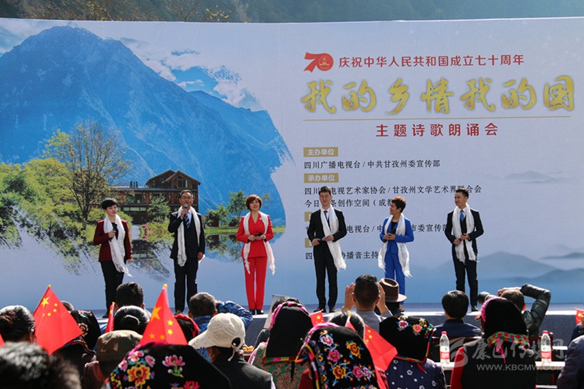 本網(wǎng)訊 10月16日,由省廣播電視臺(tái)、州委宣傳部聯(lián)合主辦的“我的鄉(xiāng)情我的國(guó)”主題詩(shī)歌朗誦會(huì)在康定市孔玉鄉(xiāng)色龍村圓滿落幕。20多名省內(nèi)知名主持人和朗誦藝術(shù)家齊聚色龍村,以天為幕、地為臺(tái),通過(guò)朗誦、演唱、情景表演等藝術(shù)形式歌頌美麗富饒的甘孜,展示甘孜新時(shí)代鄉(xiāng)村振興的美好畫(huà)卷,講述新中國(guó)成立以來(lái)發(fā)生在蜀鄉(xiāng)大地上的故事,獻(xiàn)禮中華人民共和國(guó)成立70周年。