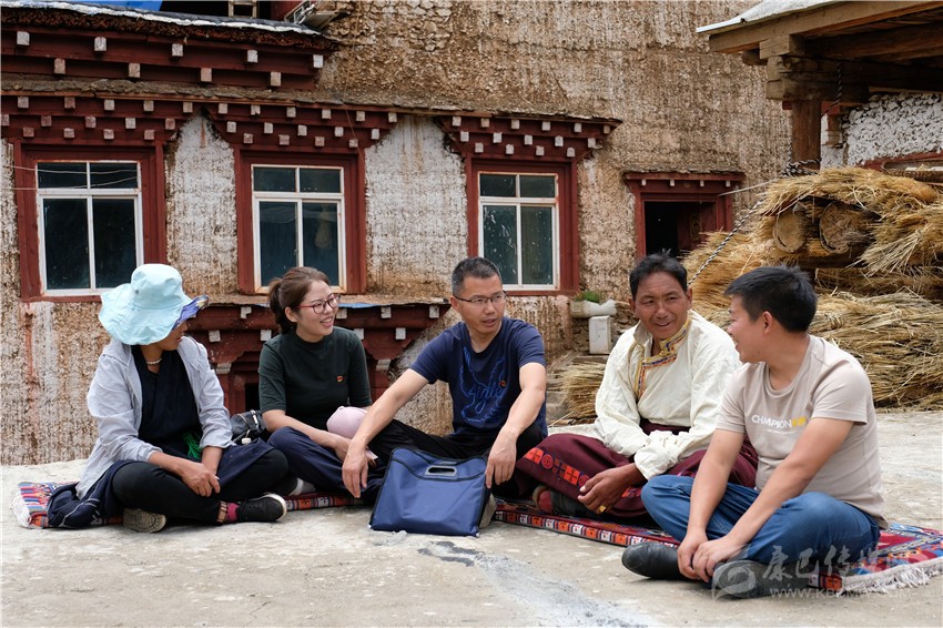 巴塘縣紀(jì)委監(jiān)委干部在訪村入戶過(guò)程中與群眾席地而談。