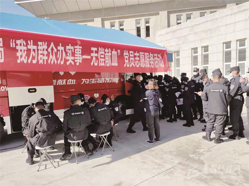 特警戰(zhàn)士參與無償獻(xiàn)血。