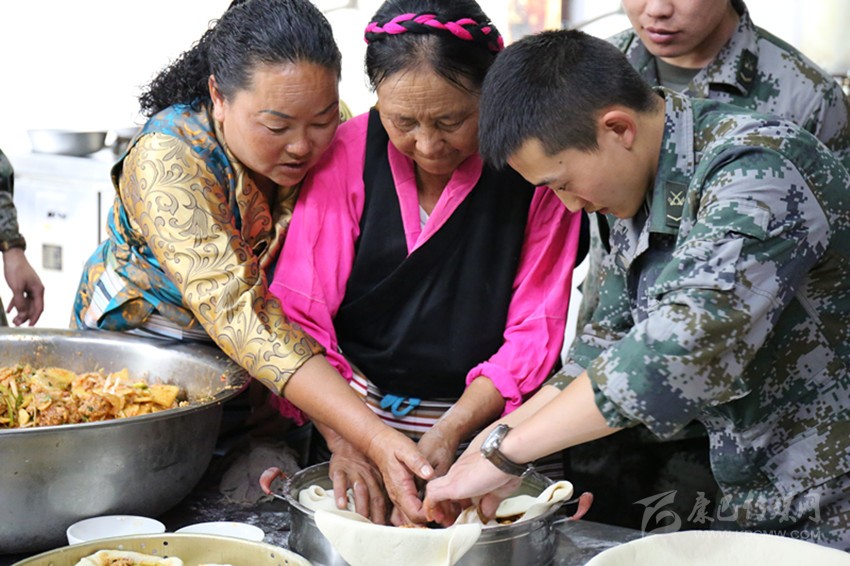 巴塘群眾與部隊(duì)官兵共同制作“團(tuán)結(jié)包子”。