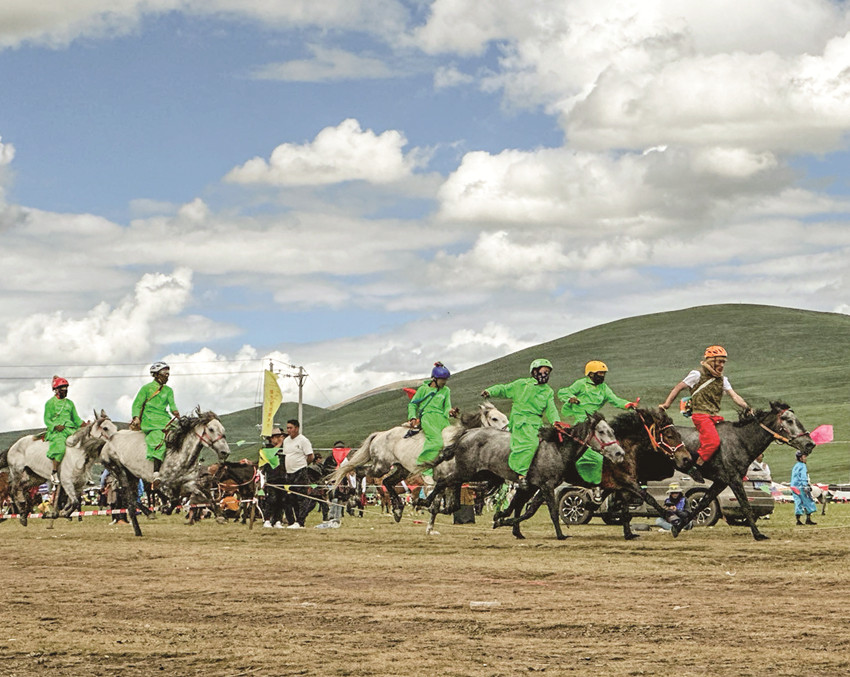 賽馬是藏族群眾娛樂生活的主要內(nèi)容,是極具特色的民俗活動(dòng),是藏族群眾對(duì)力量、勇敢、智慧的向往和崇拜,也是一項(xiàng)充滿激情的傳統(tǒng)民族體育運(yùn)動(dòng)。近年來,色達(dá)縣利用“金馬節(jié)”這一傳統(tǒng)民族節(jié)日,開展了長(zhǎng)跑、短跑和走馬等賽馬比賽,在遼闊的扎青塘草原中央,騎手們與賽馬緊密配合,英姿颯爽,風(fēng)采盡顯,卓越的表現(xiàn)引得場(chǎng)外加油聲、喝彩聲此起彼伏,群馬奔騰的景象震撼人心,讓前來觀賽的群眾大飽眼福,嘆為觀止。