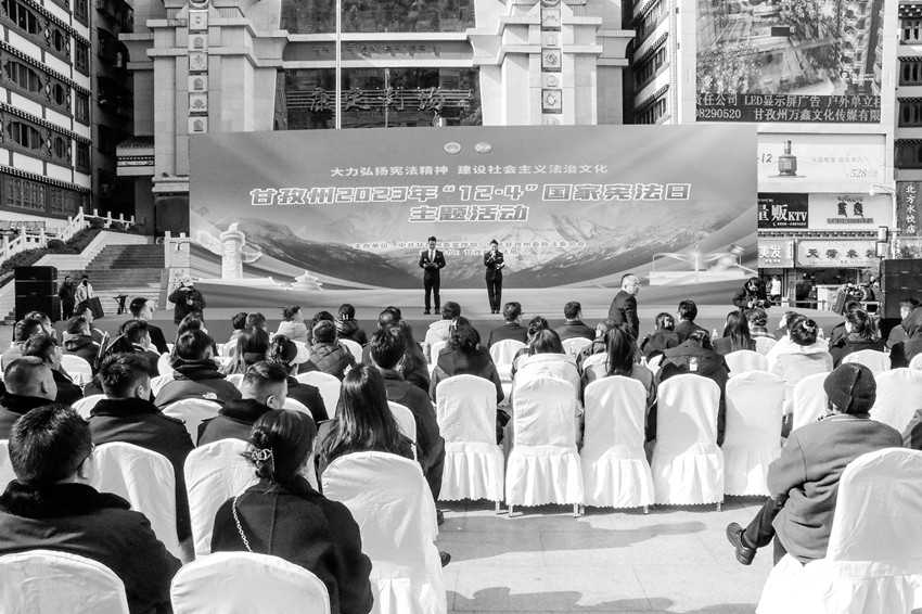 本網(wǎng)訊 在第十個(gè)國(guó)家憲法日之際,12月1日下午,由州委宣傳部、州委政法委主辦,州司法局承辦的“甘孜州2023 年‘12·4’國(guó)家憲法日宣傳活動(dòng)”在康定市情歌廣場(chǎng)舉行。