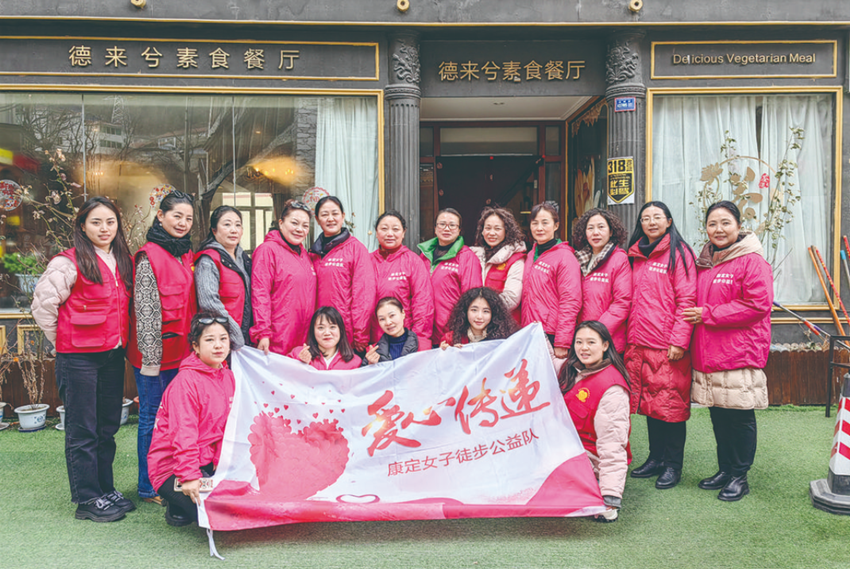 自2019年起,團隊還堅持每年舉行“致敬環(huán)衛(wèi)工”免費自助餐活動;3年新冠疫情期間及“9·5”瀘定地震發(fā)生后,團隊更是積極響應(yīng)黨委政府亟需志愿者的號召,一抹抹“巾幗紅”賡即沖在一線,購置災(zāi)區(qū)所需用品、悉心照顧受災(zāi)病患,發(fā)揮了公益團隊應(yīng)有職能,康定女子徒步公益隊的名字,愈來愈為人所知、為人稱贊。
