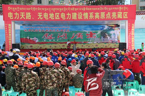 本網(wǎng)訊(見習(xí)記者 陳雪峰 文/圖) 8月29日,由中共甘孜州委、甘孜州人民政府和國網(wǎng)四川省電力公司主辦,州委宣傳部、州發(fā)改委和中共甘孜縣委、甘孜縣人民政府共同承辦的“電力天路”暨無電地區(qū)電力建設(shè)慰問演出活動在甘孜縣舉行。州政府副州長張平森和國網(wǎng)四川省電力公司副總經(jīng)理丁燕生等蒞臨慰問演出現(xiàn)場。