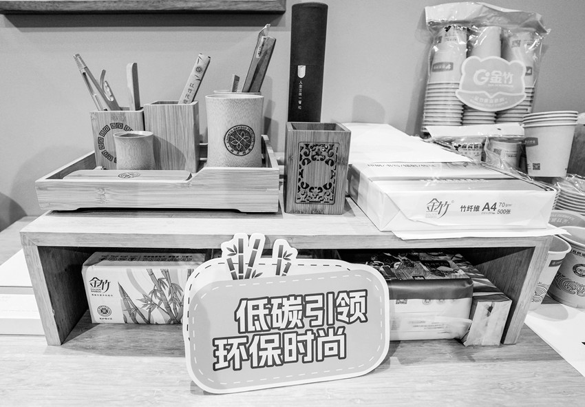 在環(huán)境服務專題展區(qū),安徽豐原集團有限公司帶來了“小秸稈”也有“大用處”的展示,展臺上的餐盒、紙杯等都是由秸稈制作而成。