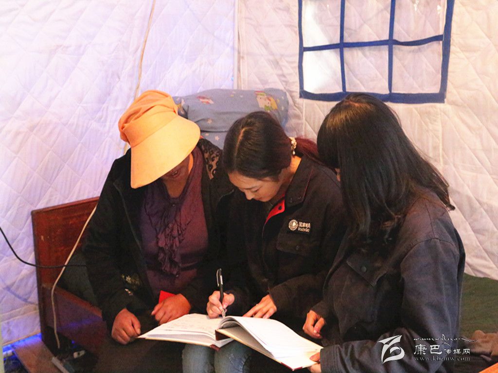 走進(jìn)救災(zāi)帳篷,澤仁汪清的姐姐古讓看到丹珍拉姆他們的到來(lái),拿出繳費(fèi)冊(cè)如數(shù)繳了電費(fèi),感激地對(duì)拉姆說(shuō):“你們上門(mén)服務(wù),讓我們節(jié)約了路費(fèi)和時(shí)間,真是太謝謝你們了!”