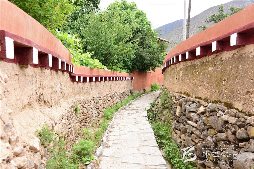 來(lái)到鮮花音樂小鎮(zhèn),踏著石板鋪成的小道前行,道旁是修葺一新的花臺(tái),半人高的圍墻將一座座錯(cuò)落有致的藏房分隔開來(lái),墻上刻著關(guān)于巴塘弦子、歌卦、藏戲、飲食以及紅色文化的介紹。“十八軍路”、“弦子路”、“藏戲路”……這里的每一條小道都被賦予特殊的名字,展示著巴塘獨(dú)有的民族文化和紅色歷史。