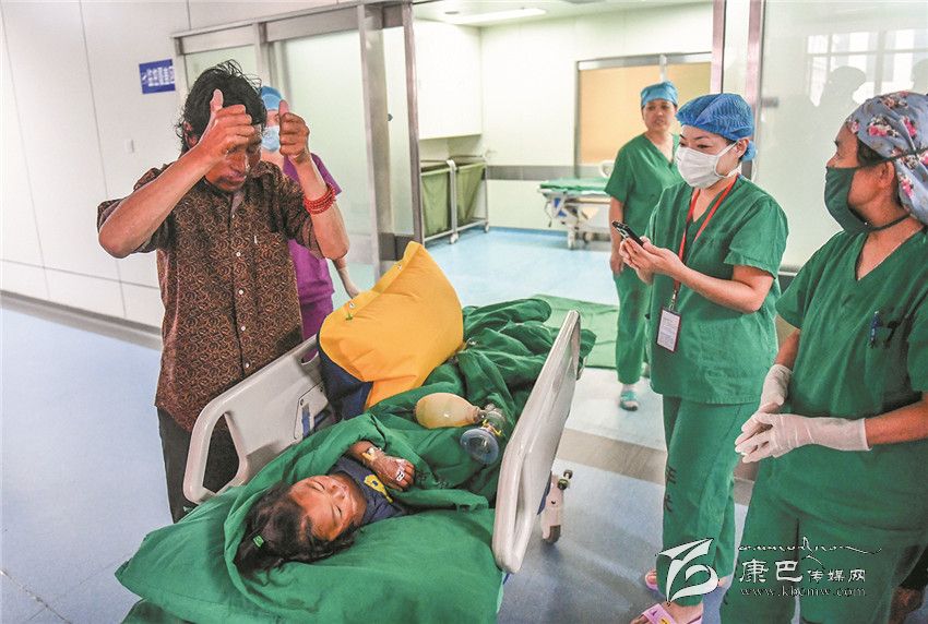 8月23日,來自四川省甘孜藏族自治州甘孜縣兩歲的藏族男孩白瑪日扎在哈爾濱市第一醫(yī)院成功進(jìn)行唇腭裂修復(fù)手術(shù)。白瑪日扎的父母是牧民,常年在大山上放牧,兩個(gè)月才能下山見一次孩子。白瑪日扎和爺爺生活在甘孜縣里。 8月中旬以來,哈爾濱市第一醫(yī)院攜手“中國宋慶齡基金會(huì)”、“一笑慈善基金”項(xiàng)目開展大型公益活動(dòng),特邀國際頜面外科、美容整形外科、麻醉科等醫(yī)療專家團(tuán),免費(fèi)為貧困家庭唇腭裂兒童手術(shù)治療,并為特困家長和孩子提供免費(fèi)的食宿,白瑪日扎便是免費(fèi)接受救治兒童中的一員。8月23日,白瑪日扎的爺爺白瑪多吉(左)對醫(yī)護(hù)人員伸出大拇指表示感謝。