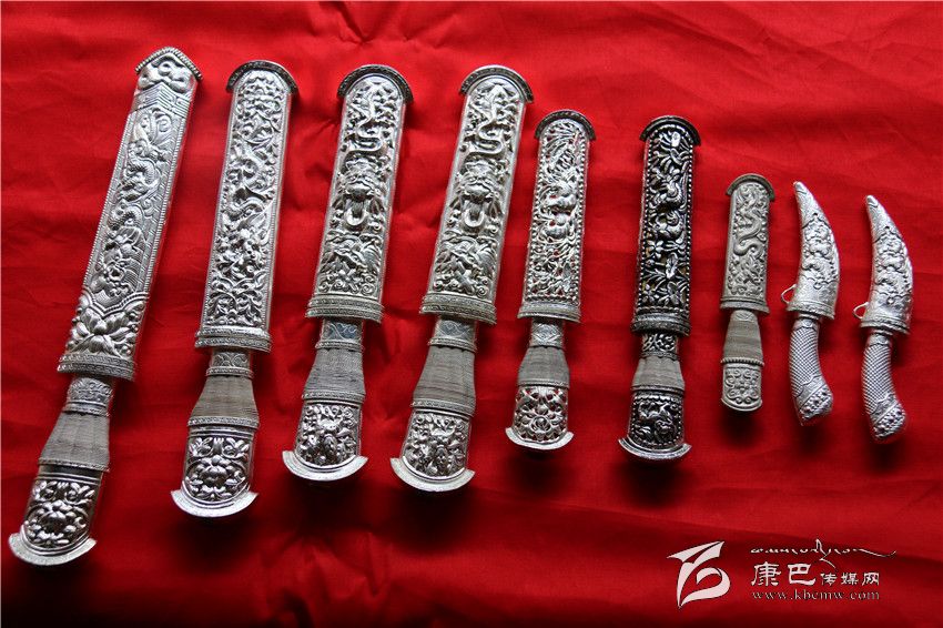 段承長開創(chuàng)的“九龍·飛鷹”刀品牌從2009年起已經(jīng)連續(xù)兩屆被評為甘孜州知名商標(biāo)。九龍縣民族工藝藏刀“飛鷹刀”始創(chuàng)于公元1902年,至今已有一百多年的歷史,段承長是家族第三代傳承人。經(jīng)過幾代人的反復(fù)研究和不斷努力,已經(jīng)將“飛鷹刀”這種帶有民族特色的工藝藏刀,打造成為了民族服飾裝飾以及生活必須為主要用途的工藝品,并且具有一定的收藏價值。在九龍做客,主人家視你為貴客,那么在你離開之際必將贈送你一把“飛鷹刀”,以代表珍貴之意。在九龍本地,由于“飛鷹刀”鍛打精致、鐫刻細(xì)膩、色彩奪目、并附有藏文,系有五顏六色刀穗,形成別具一格的藏族工藝品。在朋友喬遷、結(jié)婚或喜生嬰兒時,送上一把“飛鷹刀”會令主人感到格外高興。