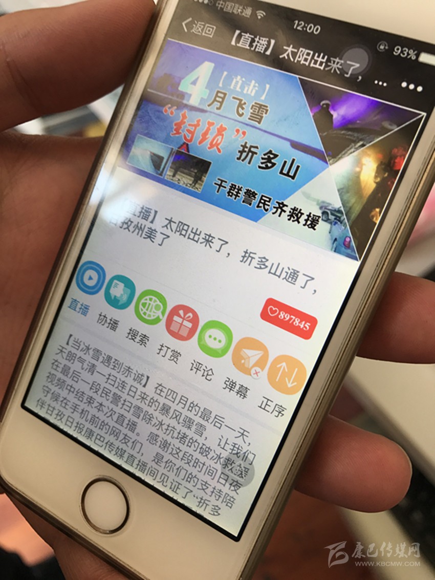 5月2日,隨著5.1小長(zhǎng)假結(jié)束,甘孜日?qǐng)?bào)對(duì)折多山突降大雪、引發(fā)交通堵塞的立體式報(bào)道告一段落,作為突發(fā)災(zāi)害性天氣,甘孜日?qǐng)?bào)行動(dòng)迅速,傳統(tǒng)媒體、掌上直播、康巴微信、甘孜發(fā)布等全媒體齊上陣,掌上直播《4月飛雪“封鎖”折多山,干群警民齊救援》,以其即時(shí)消息、圖片、視頻等海量信息,引發(fā)點(diǎn)擊“狂潮”,不到兩個(gè)小時(shí),點(diǎn)擊量即超過(guò)35萬(wàn)人次,至小長(zhǎng)假結(jié)束,點(diǎn)擊量近百萬(wàn)人次;康巴傳媒微信《4月飛雪,千人馳援》點(diǎn)擊量超12萬(wàn)人次;甘孜日?qǐng)?bào)社對(duì)折多山大雪現(xiàn)場(chǎng)立體交叉式直播被新華社、中國(guó)新聞網(wǎng)、華西都市報(bào)封面新聞、網(wǎng)易新聞?lì)l道等州外媒體分別轉(zhuǎn)載或引用相關(guān)報(bào)道。我州應(yīng)急措施有力、有序,得到眾多媒體和網(wǎng)友紛紛點(diǎn)贊。州委常委、宣傳部長(zhǎng)相洛稱贊甘孜日?qǐng)?bào)在這次直播中,行動(dòng)迅速、引導(dǎo)有力,既客觀報(bào)道了突發(fā)性災(zāi)害天氣對(duì)我州交通和旅游帶來(lái)的不利影響,更突出報(bào)道了我州和康定市采取的各項(xiàng)應(yīng)急措施,是一次媒體融合的有益嘗試。