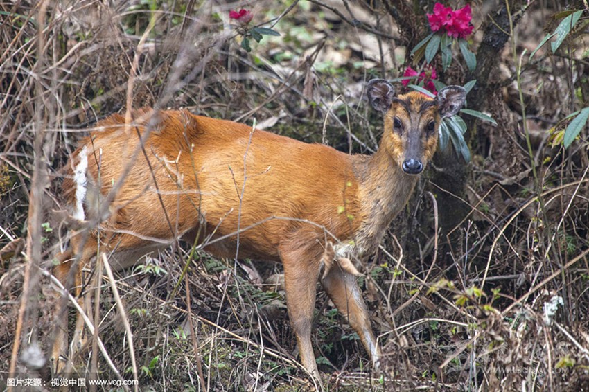 這一地區(qū)的有蹄類種類極其豐富,在后來的紅外相機(jī)監(jiān)測數(shù)據(jù)中發(fā)現(xiàn),在林區(qū)的四臺(tái)相機(jī)僅在一個(gè)月的時(shí)間里就拍到了6種有蹄類:水鹿、鬣羚、斑羚、毛冠鹿、馬麝、野豬。再加上親眼目睹的巖羊和白唇鹿,這已經(jīng)有8種有蹄類的存在。而根據(jù)林業(yè)局的走訪記錄,這一地區(qū)的有蹄類動(dòng)物很可能達(dá)到10種或者更多。