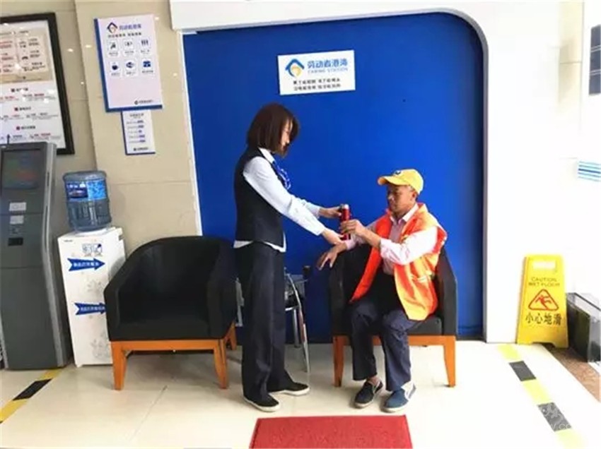 康定市某環(huán)衛(wèi)工人:以往我們除了辦業(yè)務(wù)都不好意思進(jìn)銀行,現(xiàn)在建行開(kāi)了“勞動(dòng)者港灣”,我們隨時(shí)可以過(guò)來(lái)歇個(gè)腳,喝個(gè)水,還可以借用洗手間。