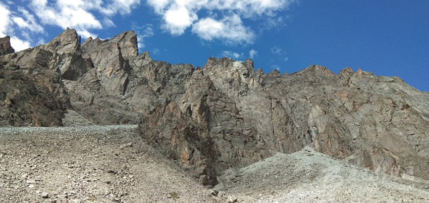 劉剛告訴記者,貝母山腳的長(zhǎng)海子(湖泊名)海拔大概在4900米左右,可就是山腳到山頂這短短的800米,兩人足足爬了一個(gè)半小時(shí)?!疤貏e是離山頂200米的地方,幾乎是懸崖絕壁,二三十米的距離我們走了二十多分鐘,下次去,一定得帶上保險(xiǎn)繩。”