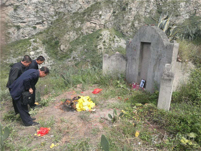 烈士親屬祭拜親人。