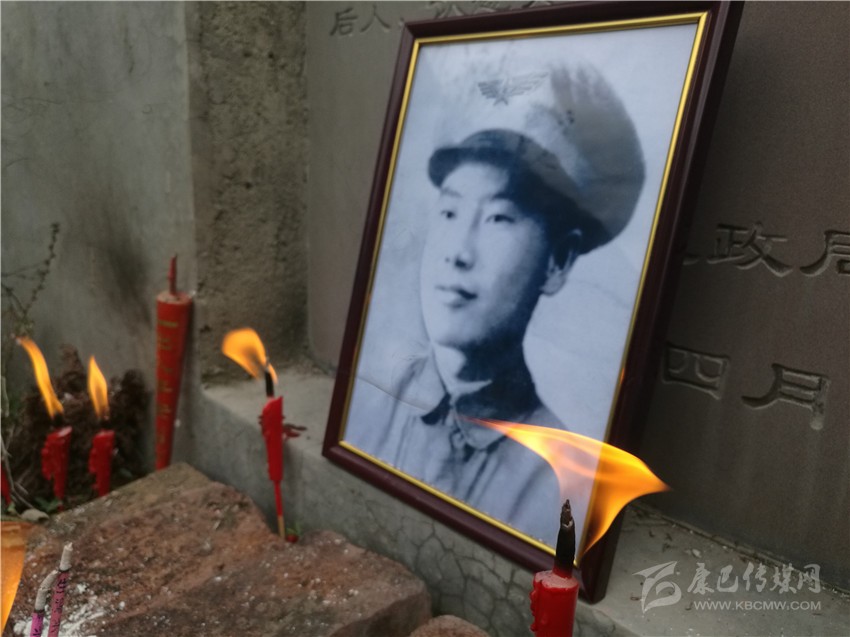擺上遺像,按照民間習(xí)俗插上香燭、燃起紙錢,火光映照下,身著軍裝的烈士張世光英氣逼人。膝頭沉重跪下,頭顱深深觸地,烈士張世光的侄子張會(huì)臣早已泣不成聲:“大伯,我來(lái)看您了;爸爸身體不好不能來(lái)了,他讓我告訴您,我們想您啊,想了67年??!”