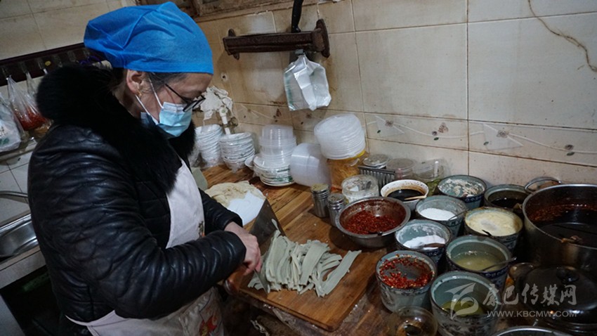 打開門店,鋪好案板,取出昨晚“拷”好的涼粉,以快刀嫻熟將其切條,清點一下碗筷,在手機端打開“餓了么”App等待客人訂餐的信息……。上午8點,53歲的辜良虹又在對傳統(tǒng)味道的雕琢中,開啟了開心的一天。這12年來,大多數康定市民的味蕾上,都留下了這種開心的記憶。