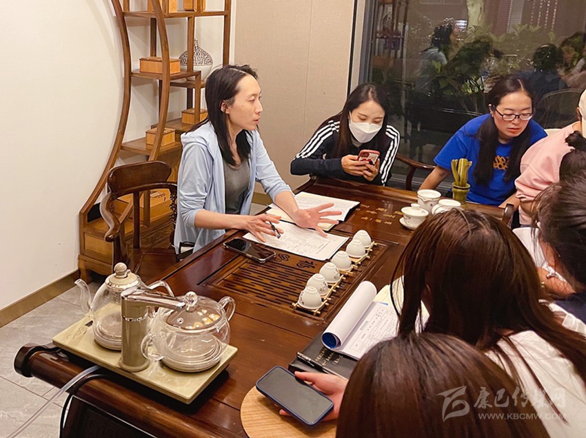 李曉(左一)組織和指導(dǎo)色達(dá)的參培教師們進(jìn)行分組研修學(xué)習(xí)。