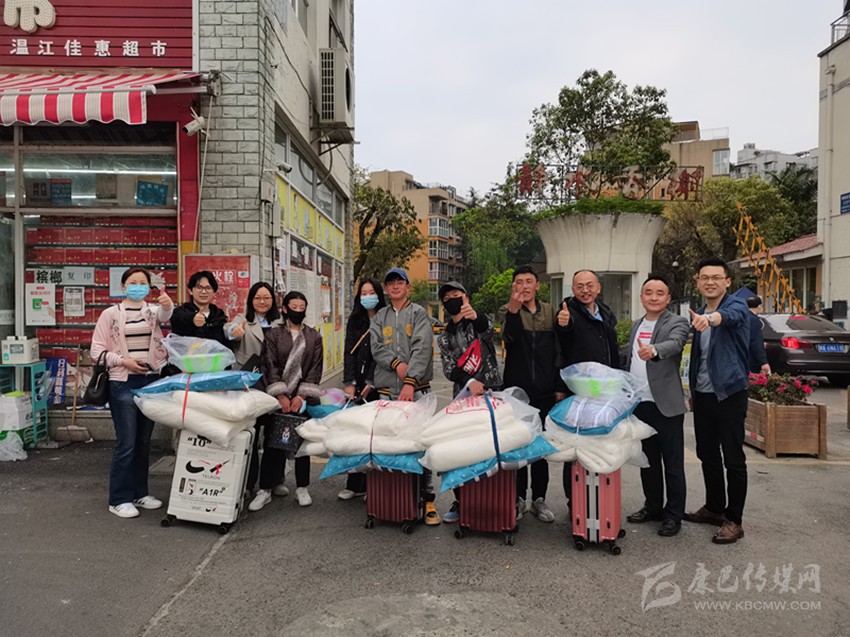 彭東帶領外出務工人員抵達溫江,并為其安排好食宿。
