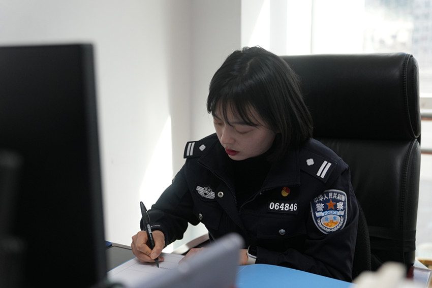 邱壘自進(jìn)入公安機(jī)關(guān)工作以來(lái),以“零”為起點(diǎn),從一般民警到面面俱到的辦公室主任。這條追光路上,她如陀螺一般未曾停歇,逐漸褪去青澀,沉淀成熟,一步一個(gè)腳印,努力實(shí)現(xiàn)她當(dāng)初的“入警夢(mèng)”。