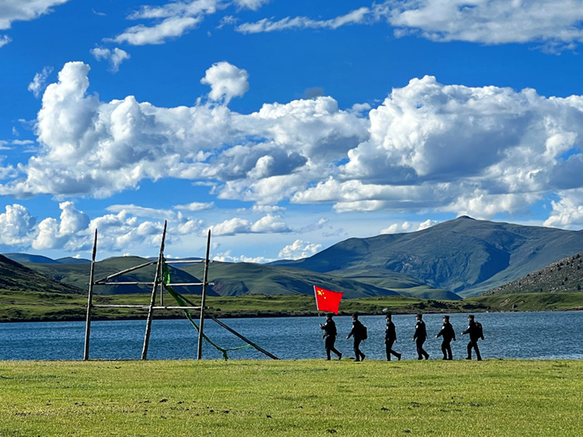 尼瑪澤仁帶領(lǐng)同事巡邏。