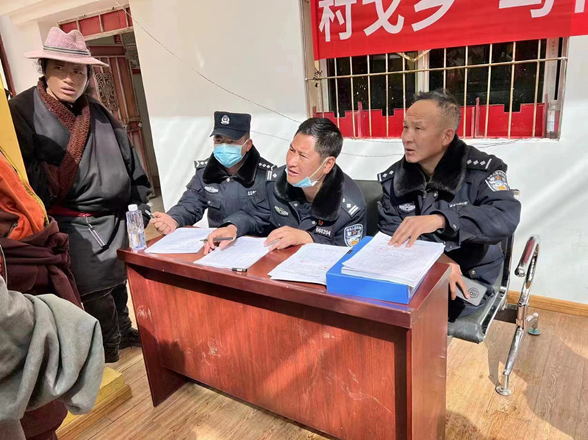 數(shù)十次辛苦奔波化解十余年積怨。2018年在村戈鄉(xiāng)雄拉村下鄉(xiāng)期間,了解到該村有幾戶村民存在糾紛,積怨多年,如不及時(shí)進(jìn)行處理,可能釀成矛盾進(jìn)一步激化。作為所長(zhǎng)尼瑪澤仁立即深入當(dāng)事人旦增彭措家中,經(jīng)過(guò)長(zhǎng)達(dá)4個(gè)小時(shí)的促膝長(zhǎng)談,旦增彭措終于訴出“苦水”。原來(lái),旦增彭措和另一戶村民家因?yàn)槭畮啄昵暗囊粯缎∈拢p方各執(zhí)一詞,互不相讓,先后發(fā)生了多次摩擦,期間雖然有過(guò)協(xié)商,但未能開(kāi)誠(chéng)布公,消除積怨。
