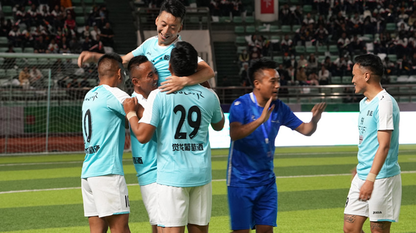 下半場一開場,兩隊攻勢如潮。第63分鐘20秒,青海黃南隊獲得角球機(jī)會,11號選手南拉卡在球門25米遠(yuǎn)射破門,全場沸騰,雙方比分重新回到同一起跑線,青海黃南隊1:1扳平青海海南隊。
