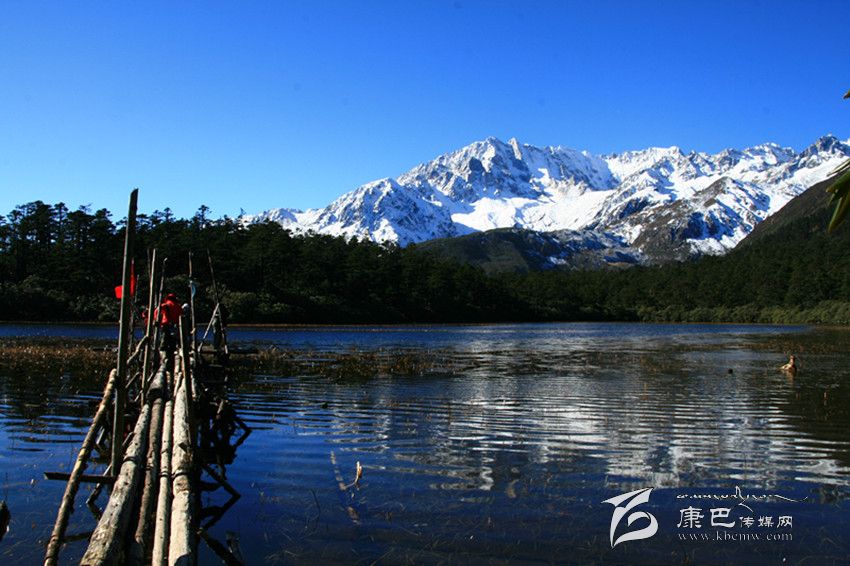 沒(méi)走幾步,眼光一下就被海子右前方(西北方)的那幕雪山倒影圖給攫去了。哇,好漂亮!白老師所言的“杜鵑海很漂亮”簡(jiǎn)直名符其實(shí)咧。