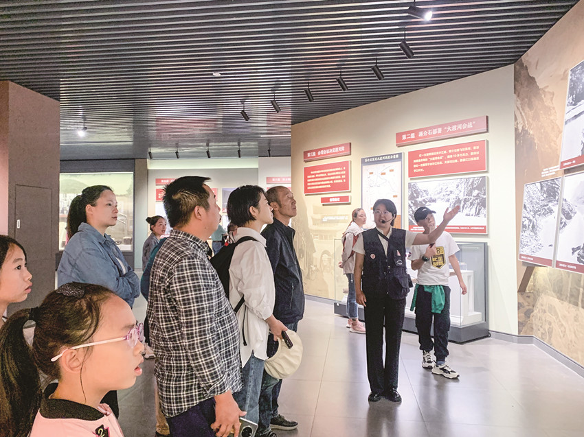 10月1日,瀘定橋游人如潮,瀘定橋革命文物陳列館和勇士路長(zhǎng)征文化主題浮雕群周邊道路車水馬龍。游客們仔細(xì)觀看館藏文物、資料,細(xì)心聽取講解員講解,憶苦思甜,深刻體會(huì)那段跌宕起伏、波瀾壯闊的紅色歲月。隨著景區(qū)景點(diǎn)基礎(chǔ)設(shè)施的完善,不少游客滿懷激情重走長(zhǎng)征路,懷古賞今,感受紅色文化無窮魅力。