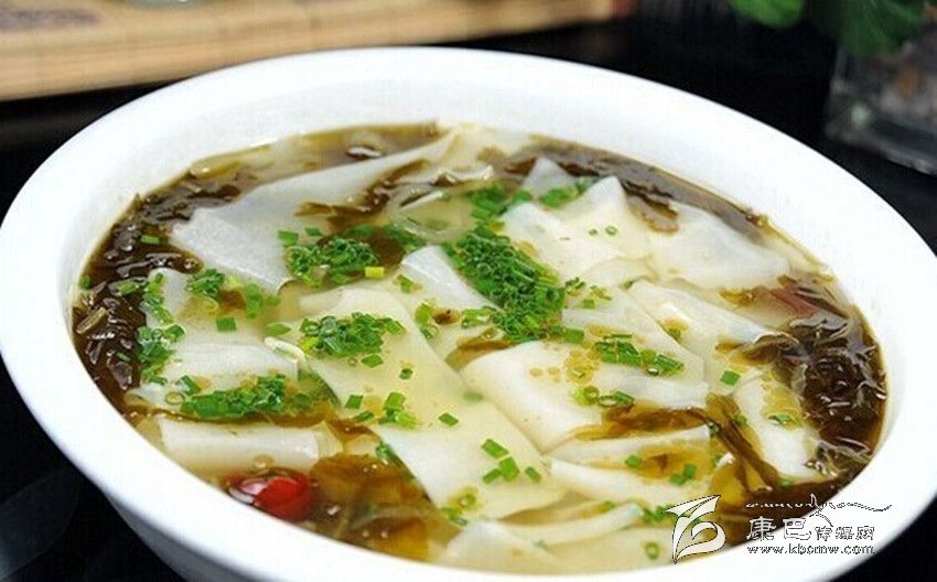 酸菜面塊這是一種特色很濃的藏族傳統(tǒng)晚餐。其主要原料是酸菜,酸菜的制作方法很簡(jiǎn)單:把菜葉煮到快熟時(shí),取出冷卻,然后裝入壇子或木桶里,密封好放在陰涼處,一星期左右就成了。
