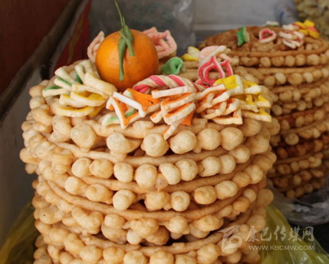 卡賽是藏族人過年必備的美食。用酥油、菜油、豬油等炸成多種面食,類似麻花、油條之類。多在藏歷年時(shí)食用。分為耳朵形、蝴蝶形、條形、方形、圓形等各種形狀,涂以顏料,裹以砂糖。既是裝飾神案的藝術(shù)品,又是款待客人的佳肴。“卡賽”的品種花色常常成為女主人勤勞、智慧和熱情的象征,在節(jié)日里分外引人注目。
