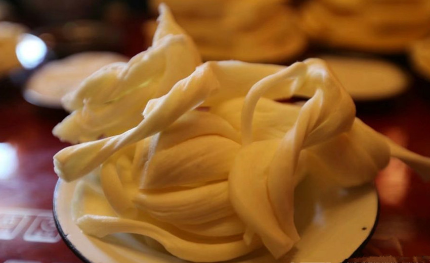 酥油古稱醍醐,元代才開(kāi)始叫酥油。元代宮廷食醫(yī)思慧在《飲膳正要》中記述了酥油的提取方法:“取凈奶子,不住手用阿赤打,取浮油者為思馬哥油,今亦云曰酥油?!蔽闹小鞍⒊唷笔翘崛∷钟偷哪酒鳌L崛∷钟陀袑iT的酥油桶,桶里有一個(gè)連桿木柄,倒上牛奶,蓋上桶蓋后,連續(xù)上下抽動(dòng)連桿木柄數(shù)百上千次,黃澄澄的酥油塊就全部浮在上面了。把酥油塊用手捏成坨,擠去水份,丟進(jìn)清水里泡一會(huì)兒,就可以食用了。現(xiàn)在牧區(qū)打酥油普遍用奶油分離器,既快又省。