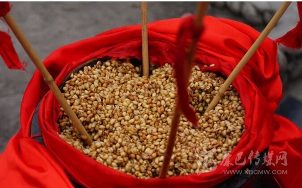 嘉絨語稱“恰鹵”。咂酒是青稞釀制而成的。首先取一定數(shù)量的青稞粒,一般5斤、8斤或10斤,在大鐵鍋中用水煮成八成熟后,放在簸箕里晾開,待冷卻后放上一定比例的酒曲,合勻,又裝入大鐵鍋中發(fā)酵三至四天,待聞到酒香味后,裝入壇中并加水,放置一天以上后,即可取汁食用,這個汁就是咂酒。咂酒味甘甜淳厚,十 分爽口,看似不醉人,但有的甘甜之中略帶苦澀,說明酒勁足,不勝酒力者應(yīng)少飲為宜。曾有人寫《飲咂酒詩》說:“成石雜糧一甕收,王侯到此也低頭,五龍抱住 撐天柱,咂盡黃河水倒流”。充分展示了咂酒的魅力和飲咂酒的那種愜意。境內(nèi)巴底、半扇門的上半鄉(xiāng)、太平橋鄉(xiāng)一帶的群眾喜愛煮咂酒,平日,家家都備有咂酒,親朋間禮尚往來、人情世故都送咂酒。喝咂酒是當(dāng)?shù)氐囊淮罅?xí)俗?!墩鹿韧椭?略)》記載了清朝后期宅壟土屯區(qū)的飲食習(xí)俗時說:“夷人(封建統(tǒng)治者對藏族的貶 稱)寨中置巨甕或木桶,富者大銅瓶盛酒,于內(nèi)植竹竿十余枝,跌坐于地互相吸飲,不杯杓勸酧(酬),無餚核(指熟食的魚肉干果),惟各布豬膘、牛肉、‘得木 鳥’(火燒子饃饃),醉飽而散”?,F(xiàn)在,巴底鄉(xiāng)、半扇門的上半鄉(xiāng)、太平橋鄉(xiāng)的大多數(shù)村寨仍然保留著這些習(xí)俗。在節(jié)日或慶典之時,在大壩子中間放一個大的壇子或木桶,里面盛滿含有酒糟的咂酒,然后插入麥桿數(shù)根,眾人圍個大圓圈跳鍋莊,口渴時依次吸之;或一人手持葫蘆,里盛咂酒,在眾人中依次轉(zhuǎn)之;或眾人盤腿 圍坐,傳一壺咂酒,稱喝“轉(zhuǎn)轉(zhuǎn)酒”。
