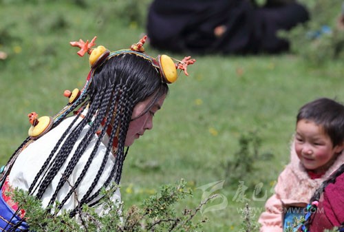其實(shí)藏族人的審美很多同漢族不一樣,參加一場(chǎng)活動(dòng)她們會(huì)在頭發(fā)上占去大量的時(shí)間,編成非常多的辮子。