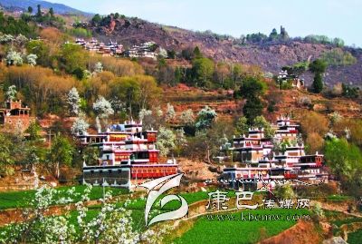 民居外表主要由棕白兩色構(gòu)成,白色的屋頂,白色的主墻,木結(jié)構(gòu)處多用棕色顏料染涂,其間配以紅、藍(lán)圖案,在藍(lán)天、白云、青山、綠水的映襯下,幻化成妙不可言的積木圖案。白色的房頂與寬敞的院壩里,身著艷麗藏裝的少女或身著絳紅色衣衫的喇嘛飄拂其間,給人一種“世外桃源”的感覺(jué)。